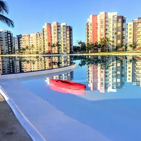 The spacious Escape Al Caribe Con Una Vista Impresionante En Pilarita'S Dream Lagoons Cancun apartment includes a terrace and is located 10 minutes by car from the Tortugranja Turtle Farm. Wi-Fi and free private parking are provided for guests' utmost comfort.